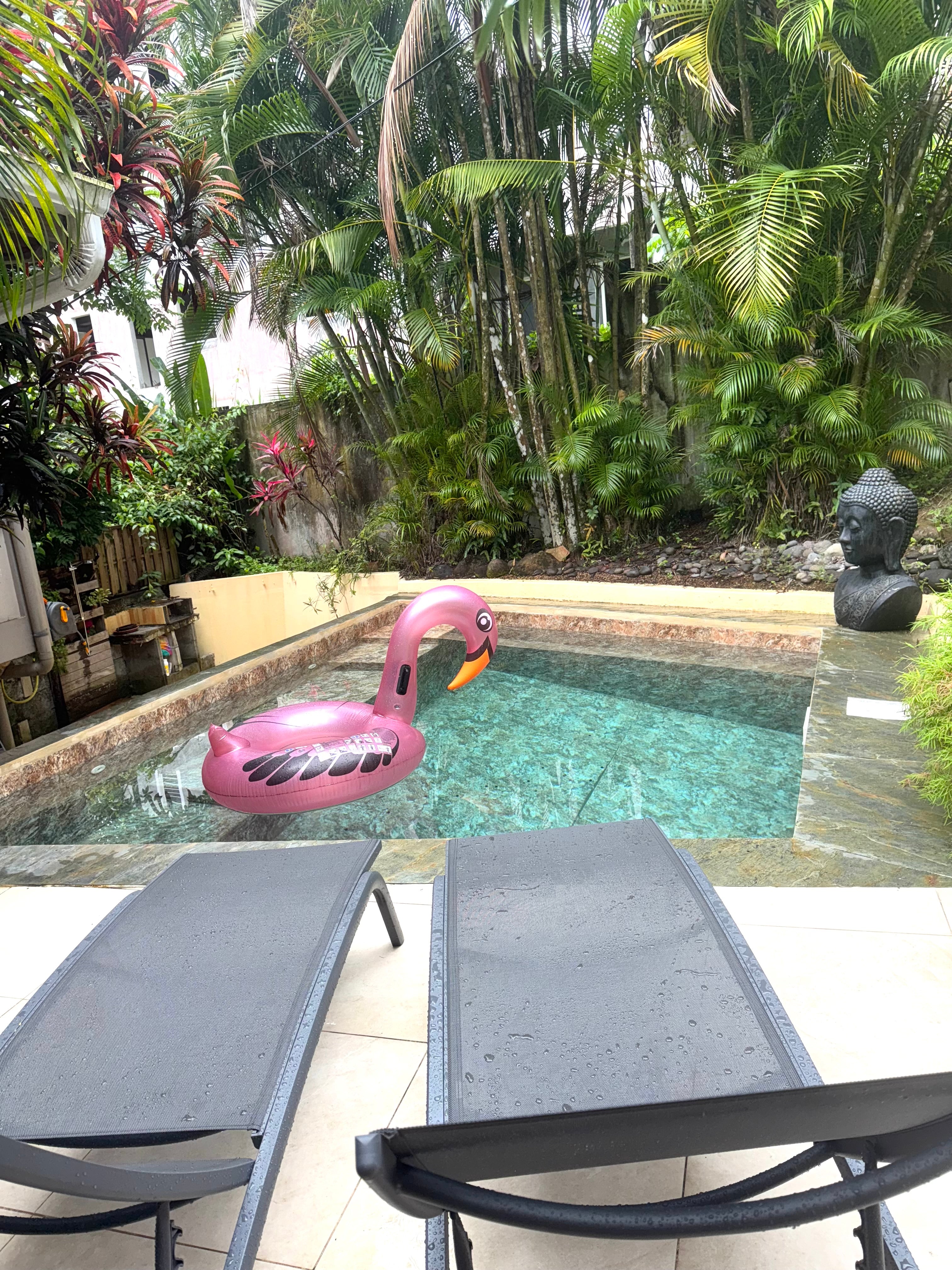 Une piscine privée, idéale pour se détendre en toute intimité sans vis-à-vis au milieu de la végétation de votre petit cocon en plein centre