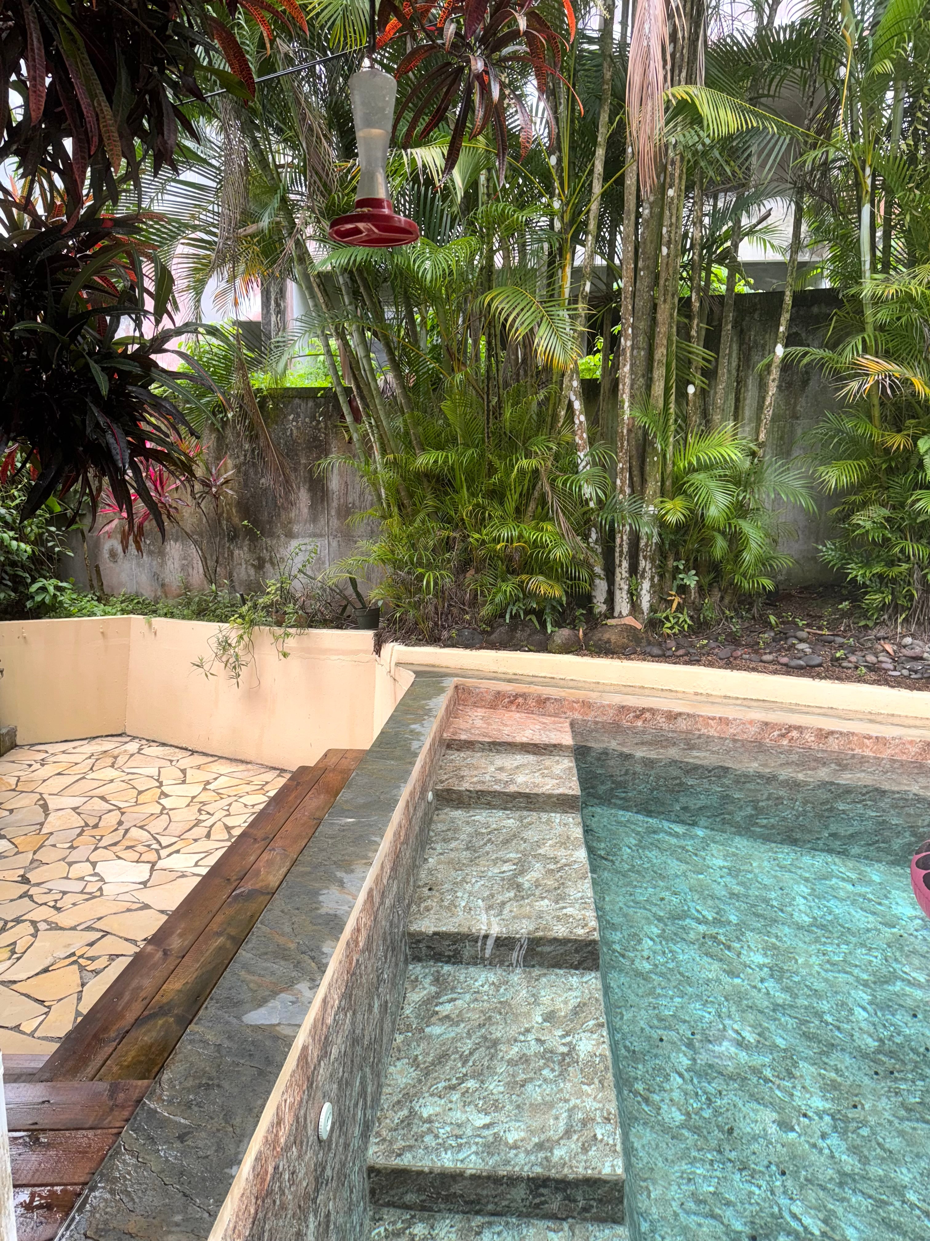 Une atmosphère paisible où viennent danser les colibris et où les perroquets traversent le ciel en fin de journée vers 18h, pour un spectacle unique.