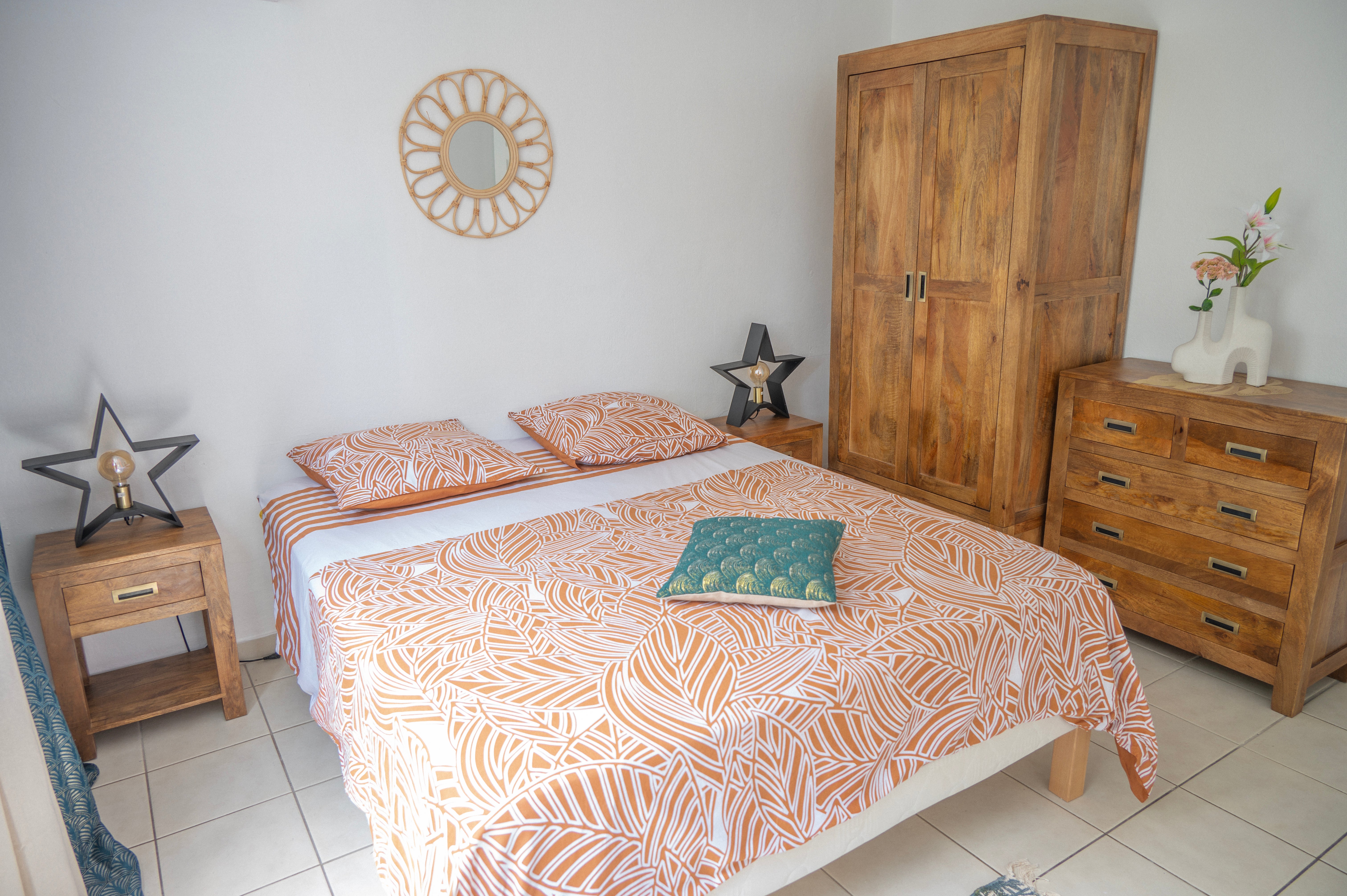 Ce T3 lumineux et spacieux vous accueille dans une ambiance zen et tropicale. Décoré avec goût, il dispose de deux chambres confortables, parfaites pour un séjour en couple, en famille ou entre amis.