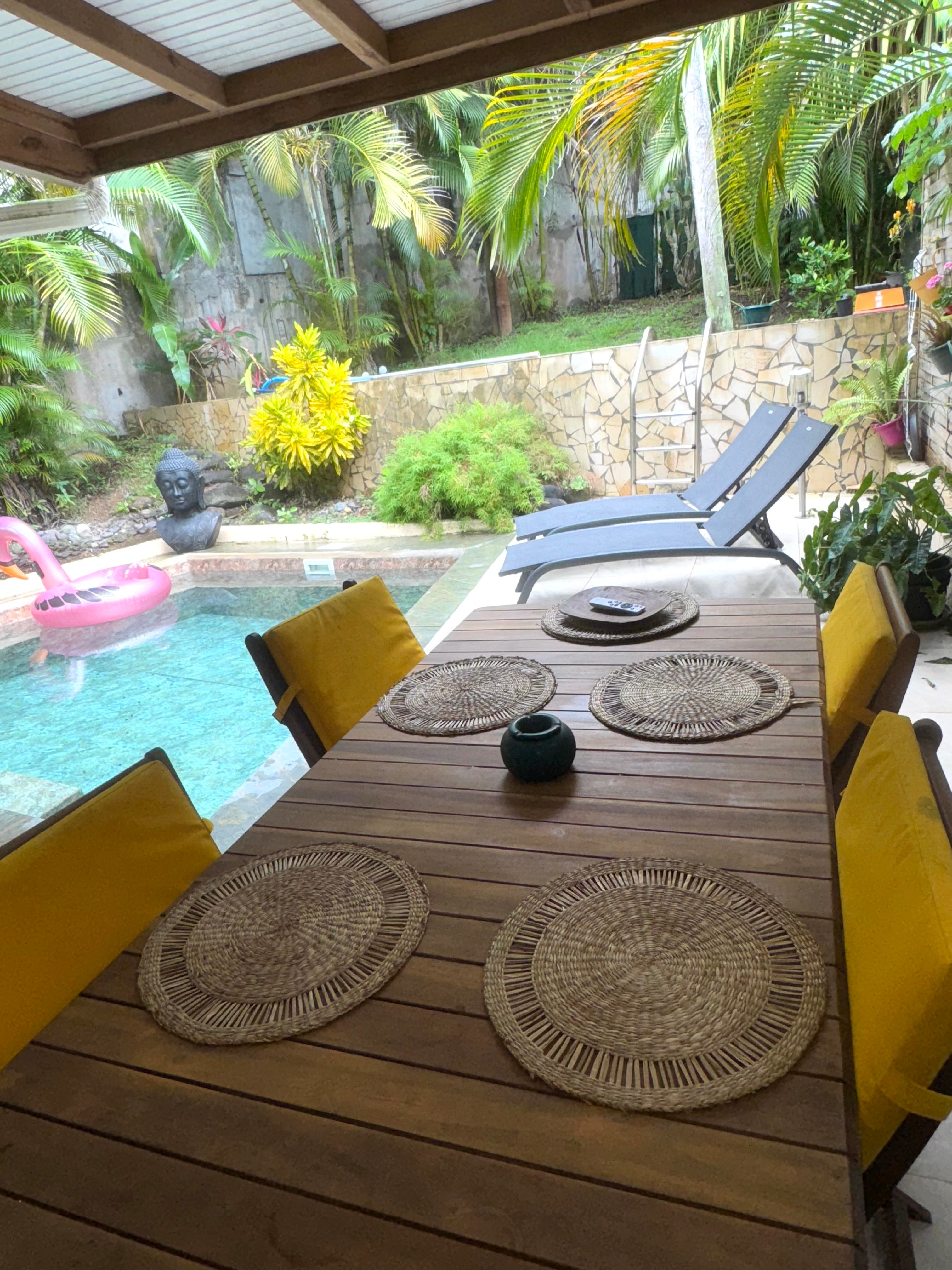 Entre bois naturel, déco bohème et touches tropicales, tout est réuni pour un séjour ressourçant sous le soleil des Antilles.